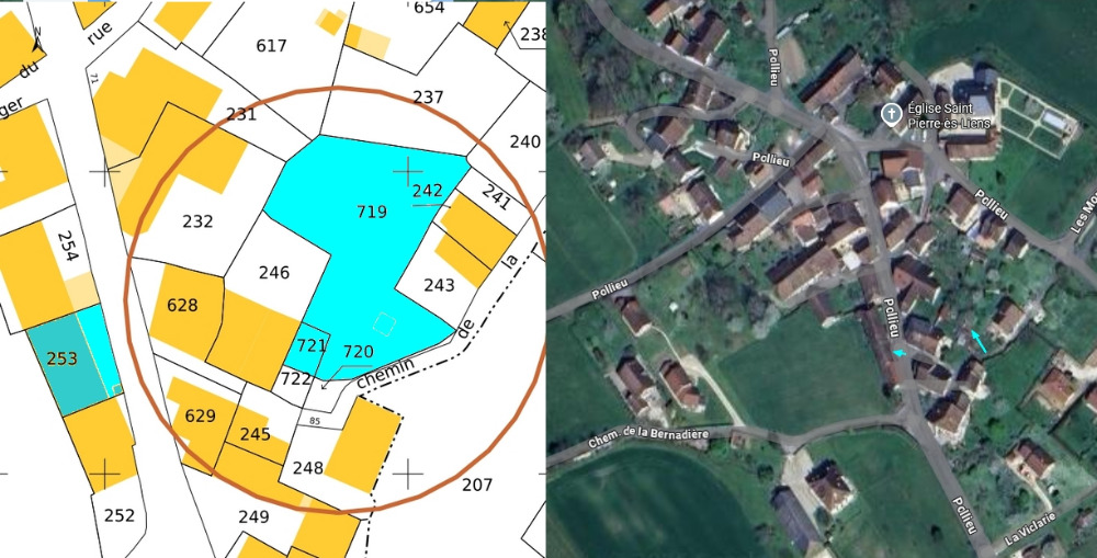 Section A n° 253 (185 m²), 719 et 721 (834 m²)